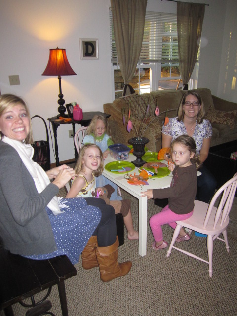 Sk helped make the place marker "turkeys" a couple days prior and all the girls worked together to make the "thankful tree" and write down things they were thankful for. Well..."write" down I mean. Aka scribble and tell us what they were writing. We ended up putting the girls to bed and continuing to hang out till about 11:00. We really had so much fun :)